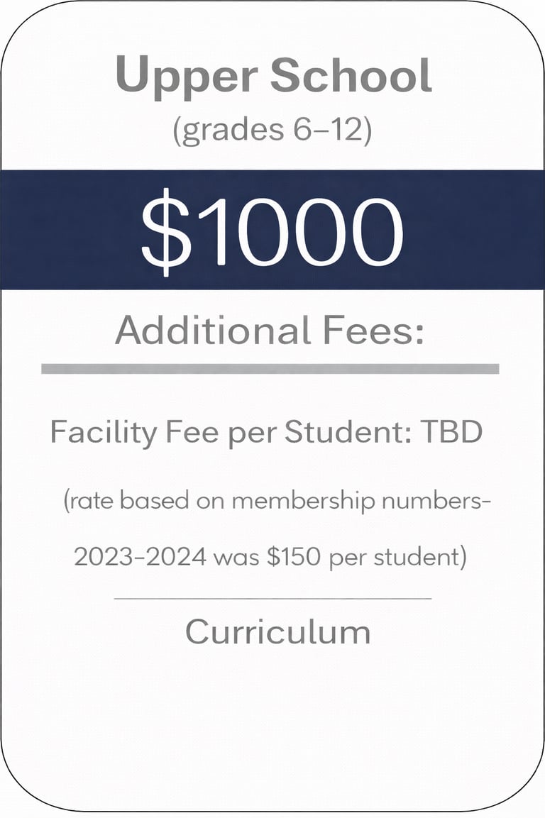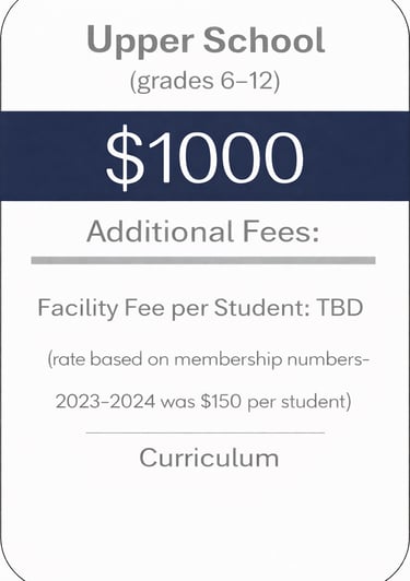 PCC aims to maintain tuition & fees that are reasonable for homeschooling families. As we expand, our financial requirements may evolve. Presently, our annual fees and tuition depend on the total number families engaged at the campus.